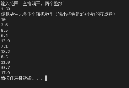 printf("%s","你想要生成多少个随机数?(输出将会是1位小数的浮点数)\n");
